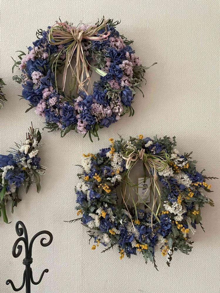 季節の草花をドライフラワーにしてスワッグやリースを作っています。