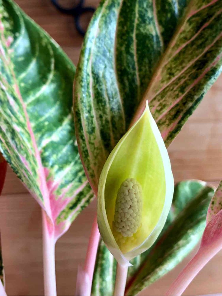 随分前の事、クワズイモの花が初めて咲いた時も よく似た花だったなぁ…と思ったら、同じサトイモ科‼️
