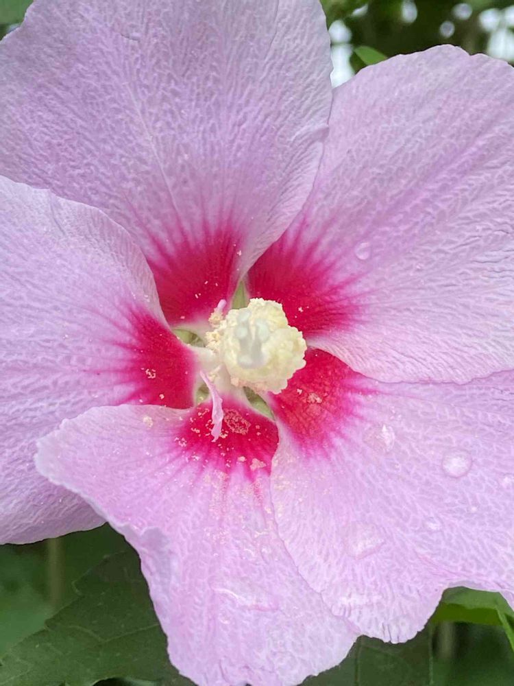 木槿こんな色もあるのね〜。雨粒を纏って素敵!!💧💞