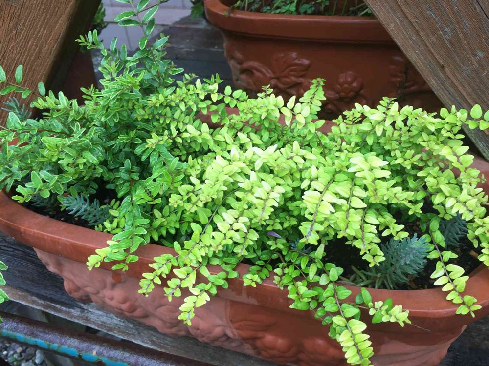 ロニセラはシダよりもっと厚い葉で光沢があります☺️