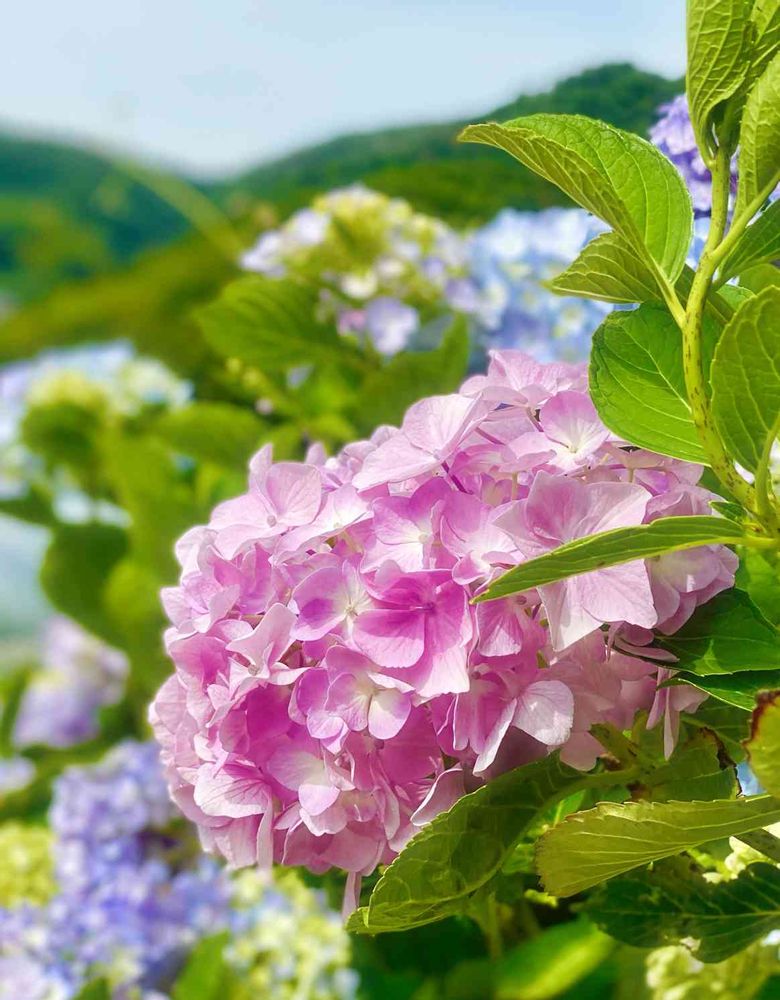 山の風景をバックにした紫陽花の写真、何故かとても癒されます(*´˘`*)♡