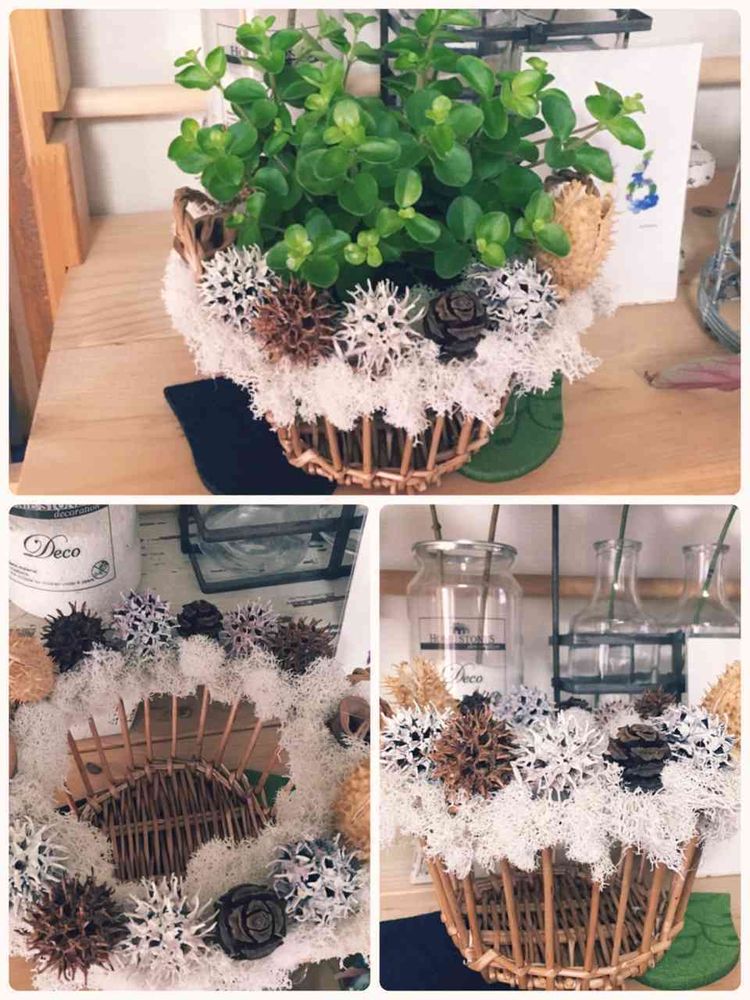 またピンクバージョン出来たら見てね⤴️ あっピンクバージョンは一個前のpicのリースの方の予定だけど😅💦ピンクのペンキ吹き付けたモミジバフウの実で作るんだよ〜 可愛く出来たら送り付けるかも😆⤴️