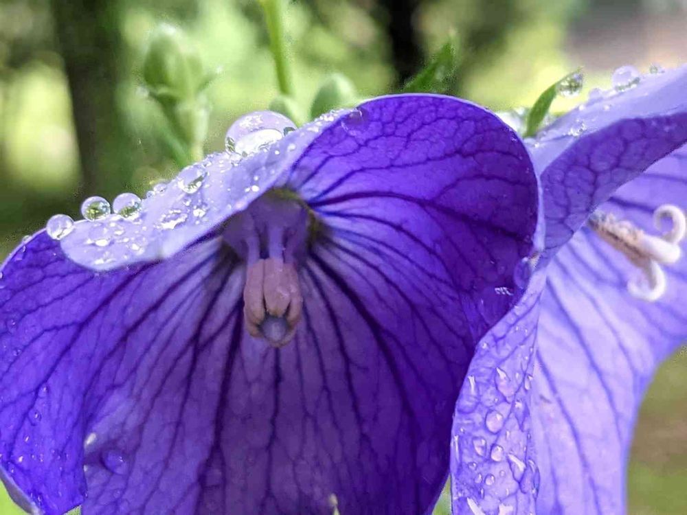 桔梗さん雨粒が重たそう。