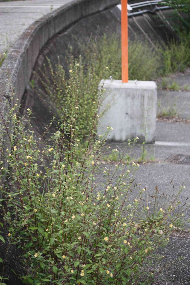 道路を縁取るように生える、アメリカキンゴジカ🌼🎶