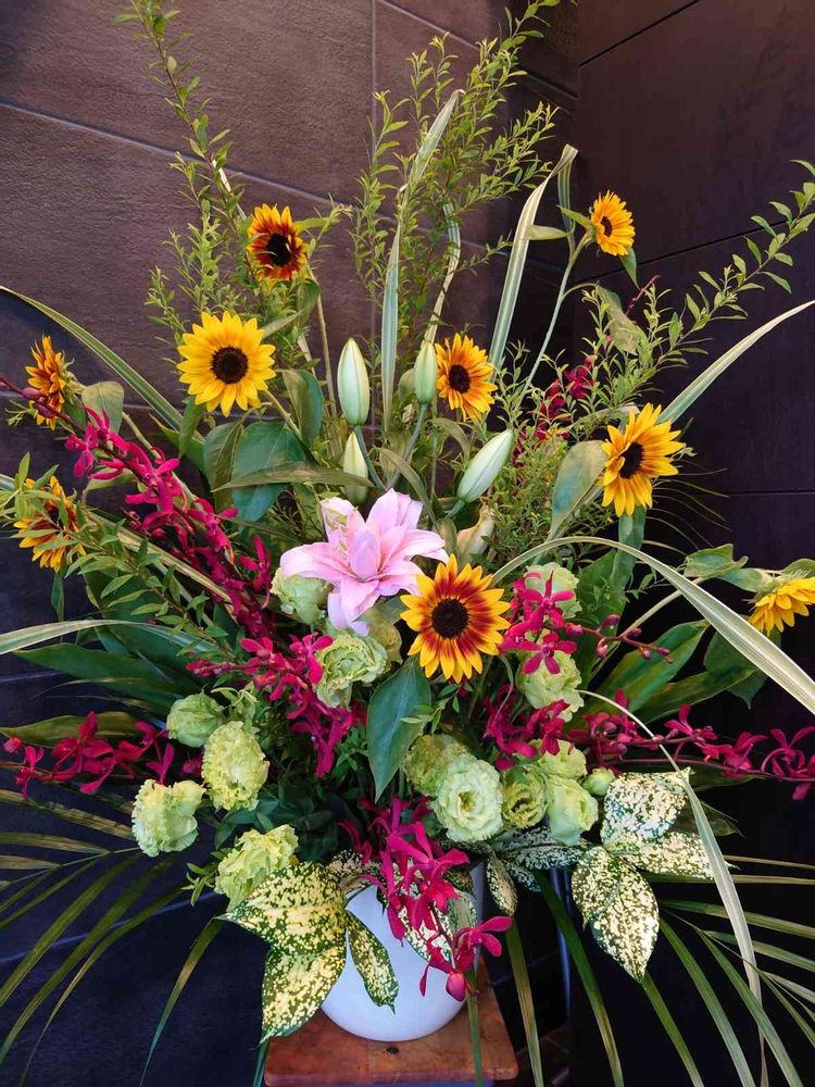 シックな🌻と、ピンクのオリエンタルリリーが素敵です💗