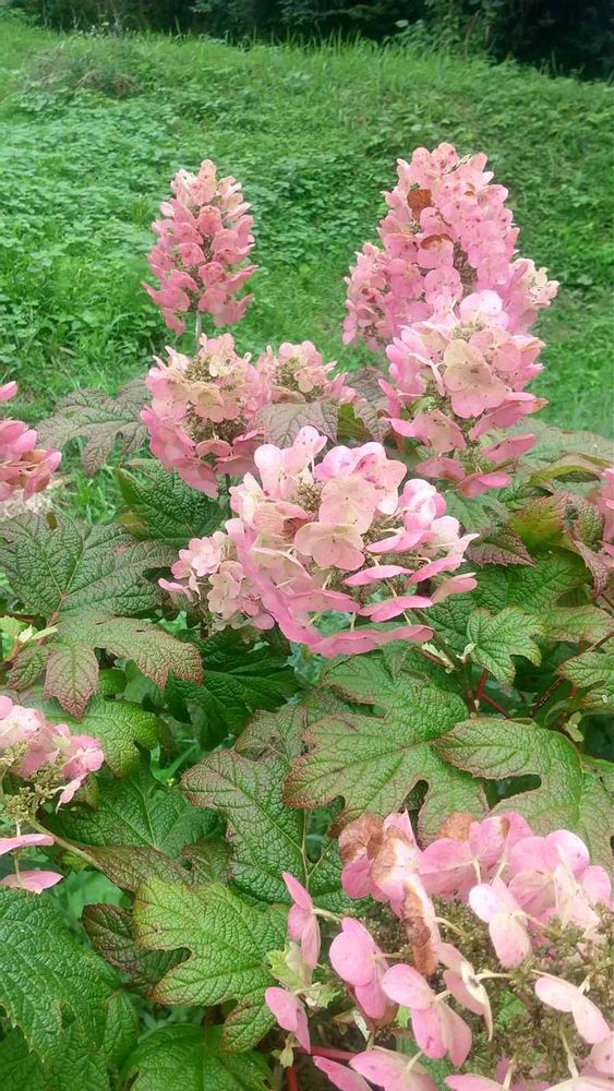 ピンクに変色した柏葉アジサイ、いつもだとこんな綺麗だったかなと思うよ😃💕💐