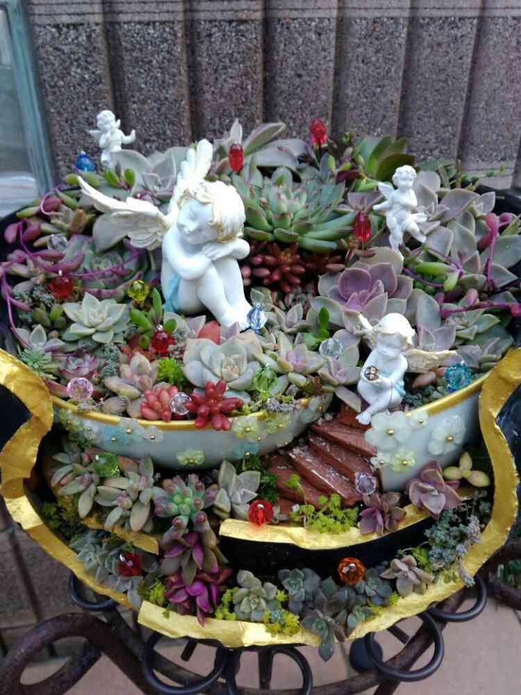 天使を無くすはずでしたが、隙間に多肉を植えるのが面倒になってしまい、何故か天使が増殖(使い所に困っていたダイソー)しました。