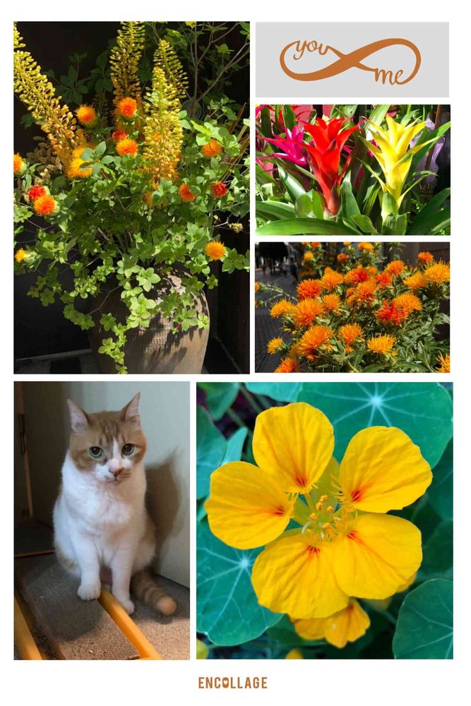 4匹の猫ママさんのグズマニア,ナスタチウム,紅花(べにばな)の投稿画像
