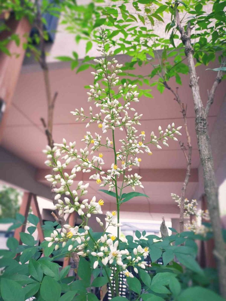 お花は毎年咲いてますよ〜🌼花びらが小さくて軽いから、風なんかで散ると地面が雪のように白くなってます😊土の上は放置😅タイルの上は掃き掃除(ちょっと面倒😋)