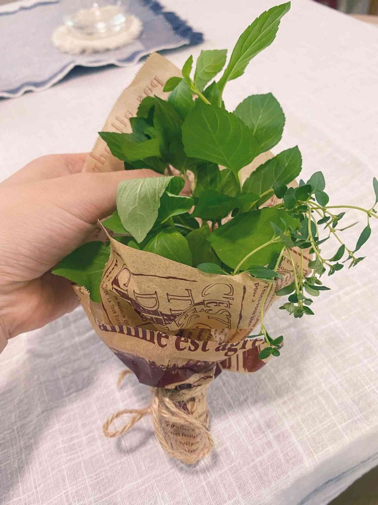 友人の誕生日にハーブのブーケを贈りました