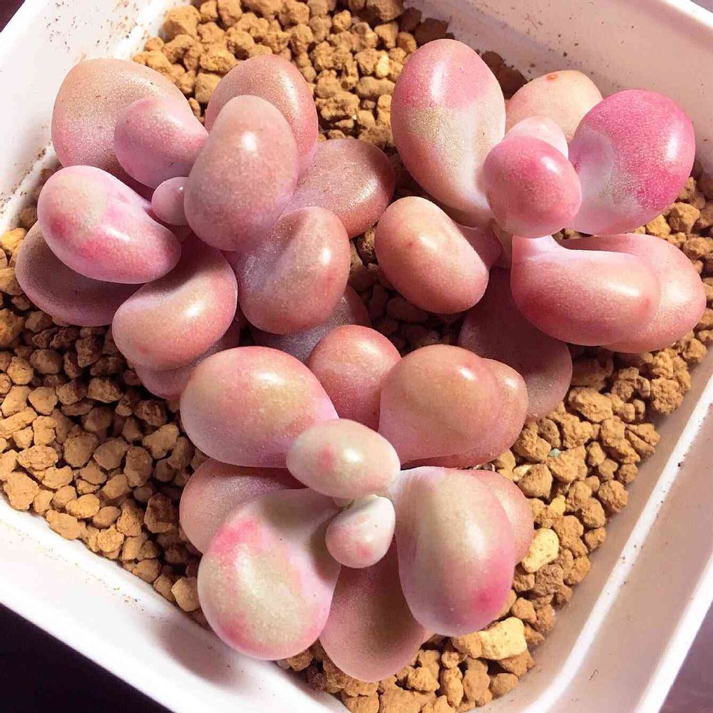 植え替えで粉が取れてしまったアメチスチヌムたち…これはこれでつやつやぷりぷりでかわいい❤️どんどんピンクになってきてます💕