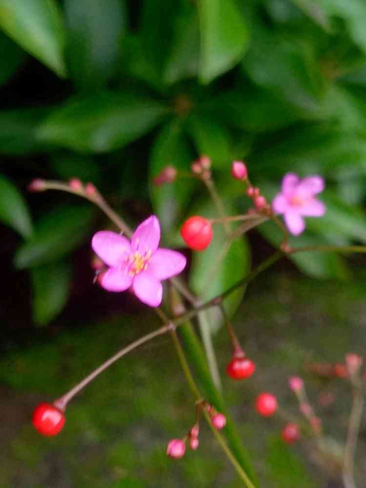 赤いツボミ?も小さなピンクのお花も可愛いですね。