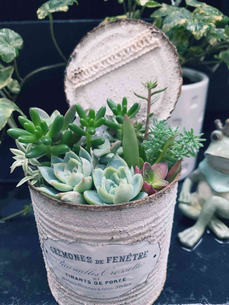 2Wくらい前にリメ缶に寄せ植えしたスカスカ寄せ集め多肉ちゃんが、少し形になってきました♬