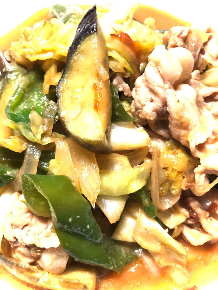 茄子の他に、キャベツ、ピーマン、新玉ねぎ、豚モモも入れて❤️