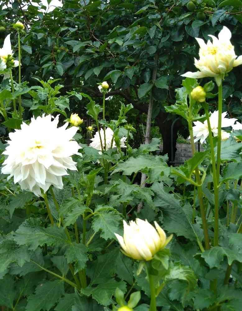 白い大輪ダリアは株がたくさんあり、次々に咲くと思います🎶