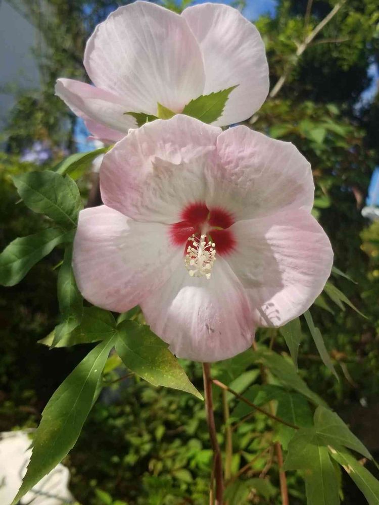 アメリカフヨウとモミジアオイの交配種でハイビスカスに花が似ています🌺