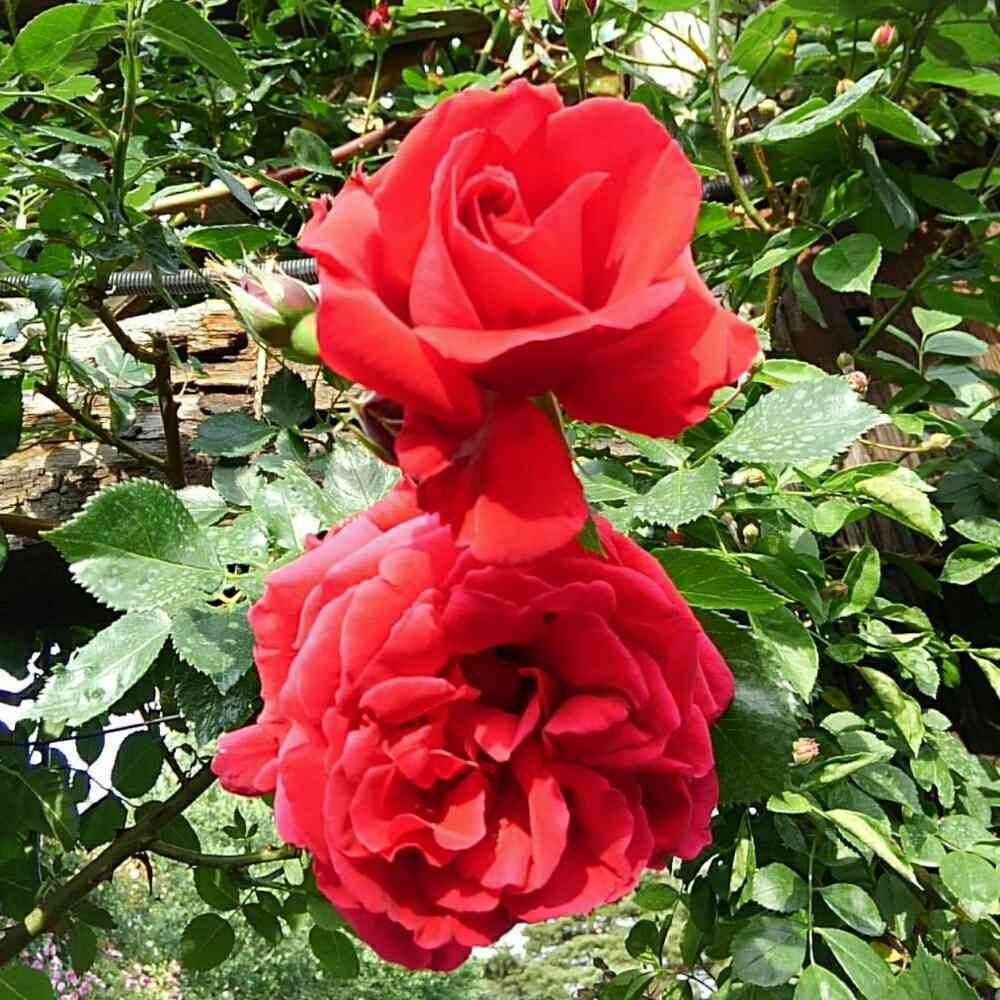 うっとりするような真っ赤なバラが寄り添って咲いてました🌹🌹