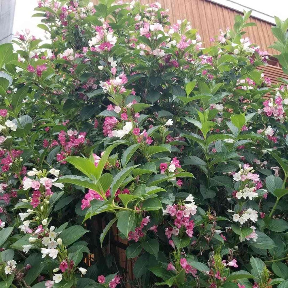 今朝の散歩は6,620歩。緑とピンクと白の取り合わせが目に嬉しい #オオベニウツギ 。下に落ちている花が全て赤く色づいているものだったので、白い花が時間が経つと赤く変色するタイプと推察する。散歩中に遠くに見かけ、思わず吸い寄せられた。 タニウツギの仲間。