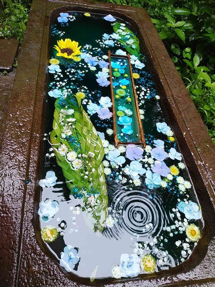 じゅんさんの、綺麗な花手水で、涼しくなれます😍