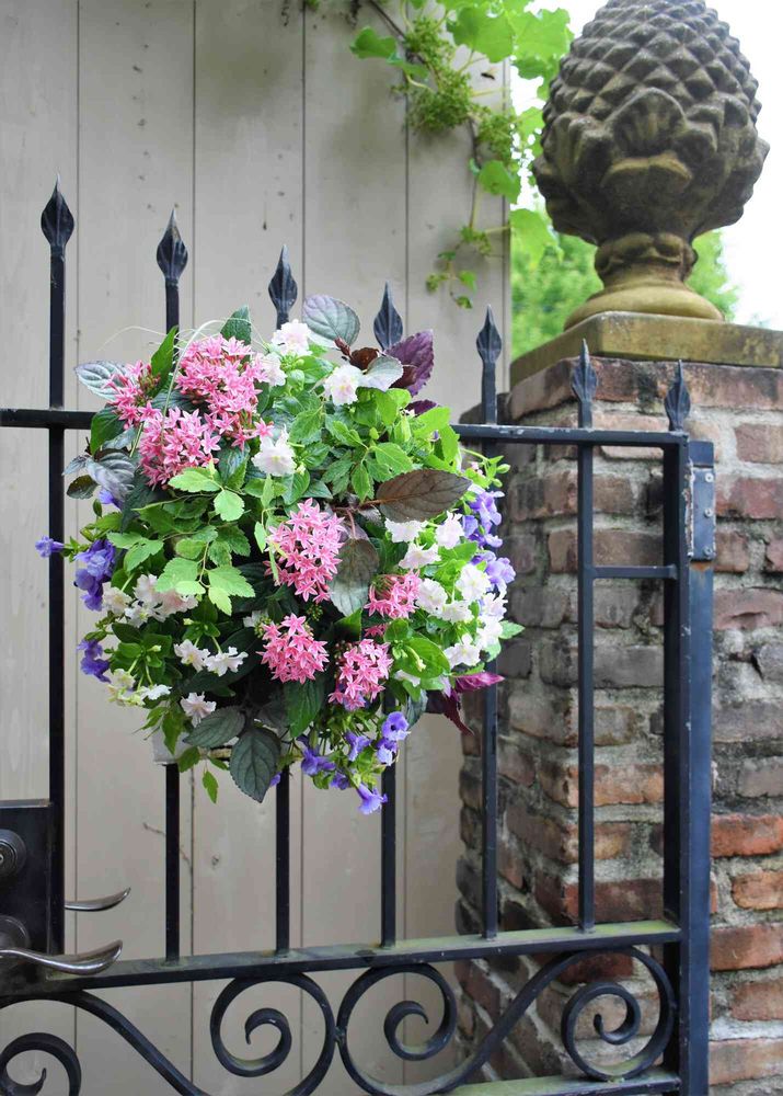 ペンタスとニチニチソウ 、トレニアのハンギングバスケット