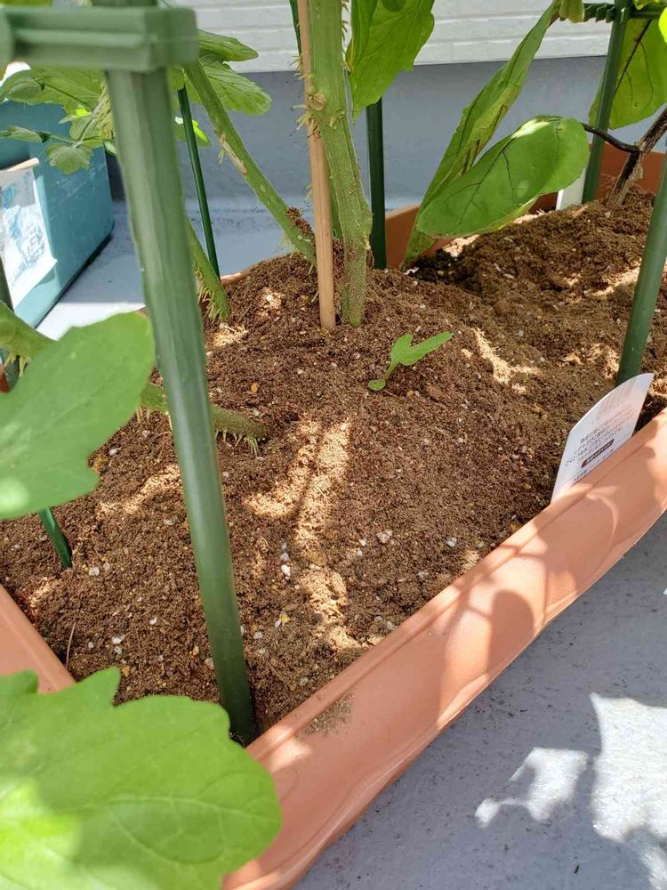 ポットからプランターへ移動させただいこんとミニトマトをかわいがってます。 いいね連打の初心者です。