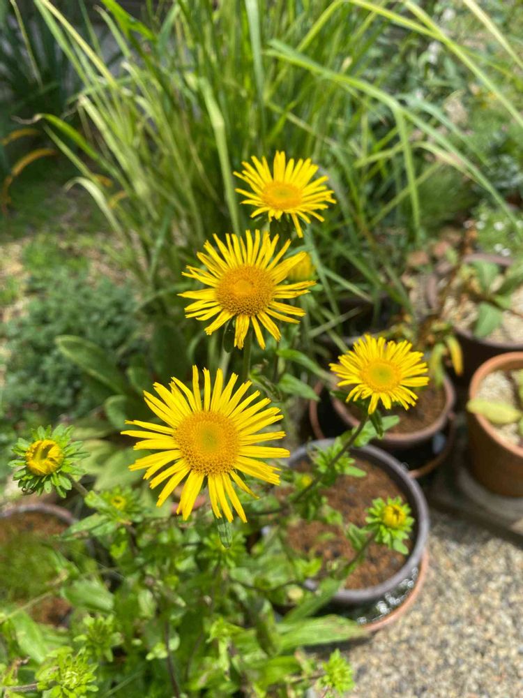 尾瀬水菊(オゼミズギク)が咲きました。春先に植え替えをしたら、元気いっぱいに咲いています😄
