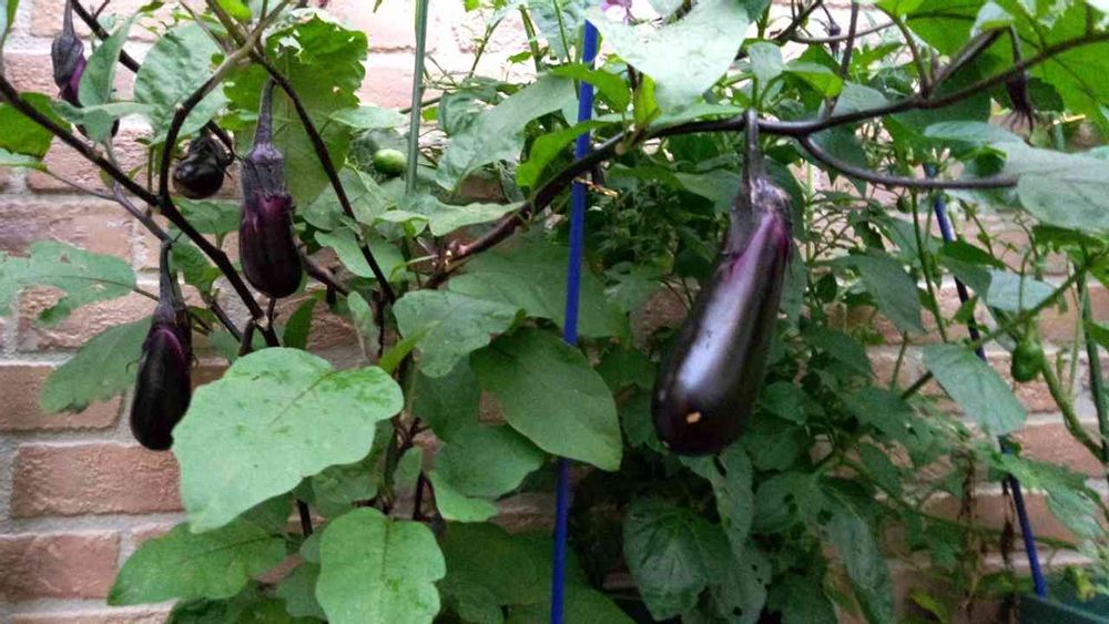 降らない今のうちに~「ご近所さんのお写んぽ③」 沢山🍆が成ってますね~⁉️早く採ってよ~私が採るよ~(笑)😆💕✨ 💜💚🥰🤩😍🎶🎵