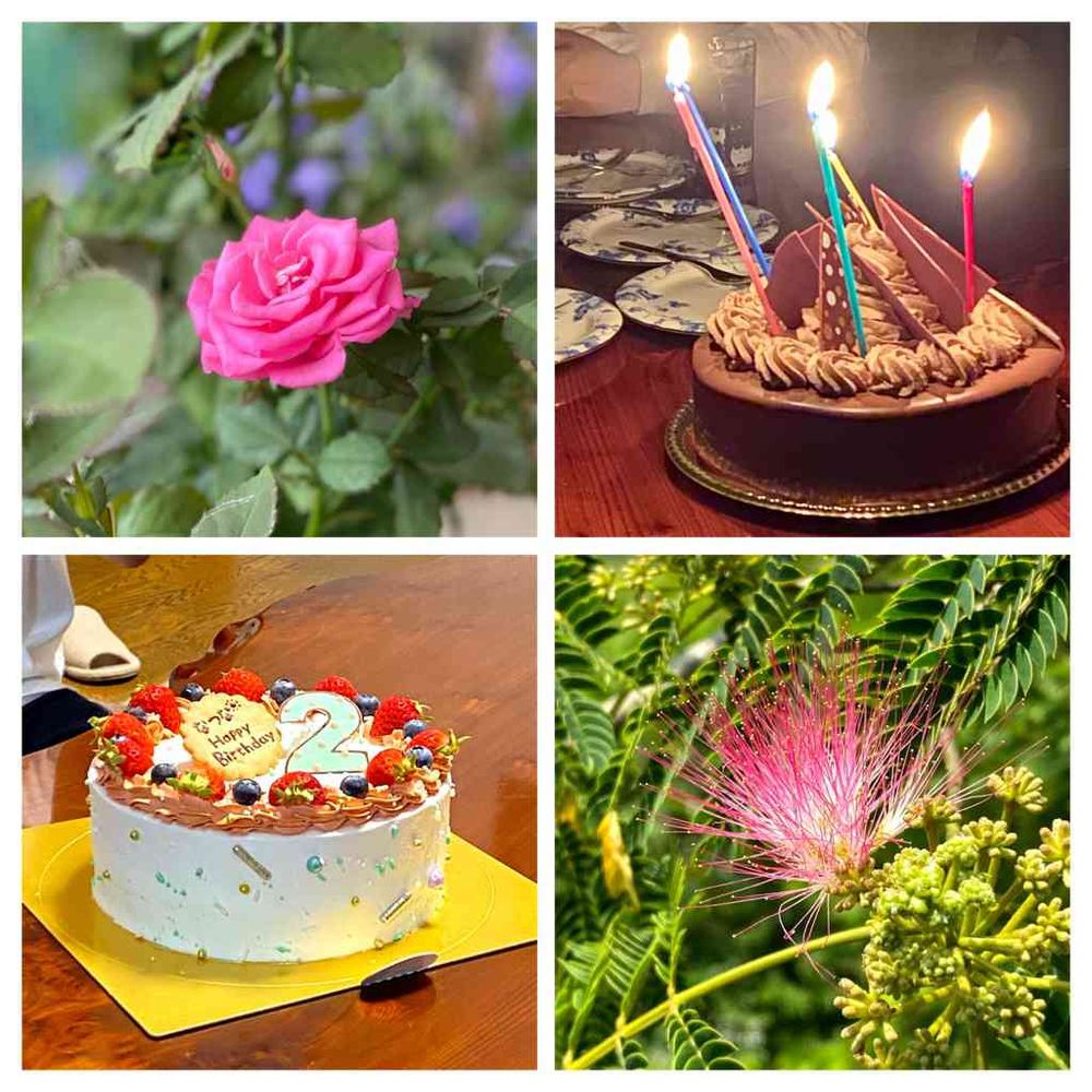 十日間に2回、家族の誕生日のお祝いをしました。右上は、娘のバースデーケーキ、左下は、孫娘のバースデーケーキ🎂。