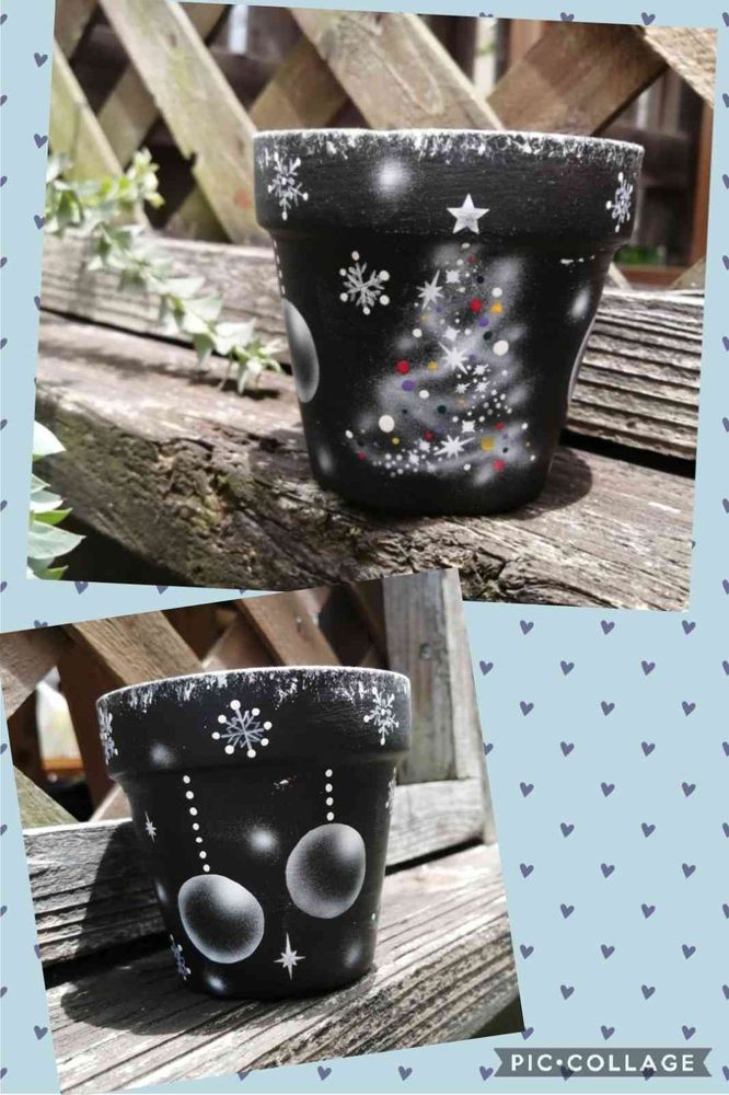 暑い真っ最中ですが、濃いカラーベース塗ってあったので、クリスマスオーナメントとツリー🎄描いてみた🎨✍💕