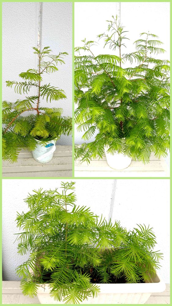 メタセコイアの実を拾い、こぼれ出た種を蒔いて育てました。