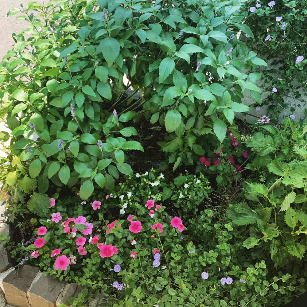 昨年から植っているブルーサルビアが元気すぎて、他の花が小さくなっています😅