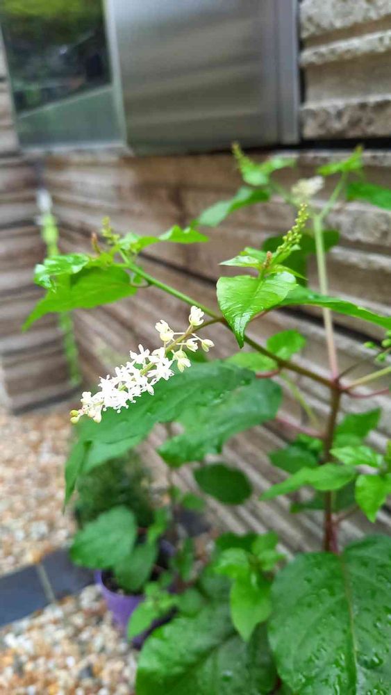 白い花は夏の終わりに珊瑚のように赤くて小さい実がなります