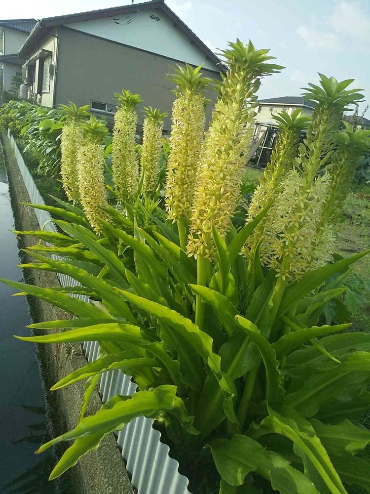 おはようございます😃ワンコの散歩でたまに通るコースに毎年咲く、パイナップルリリーです😁家のは花芽もない💦