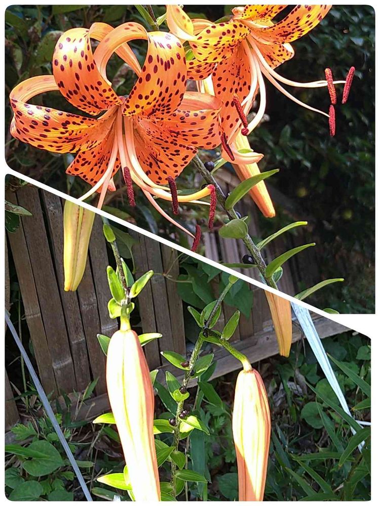 古い大きいお宅の竹の塀の道路側にオニユリが沢山咲いていました。