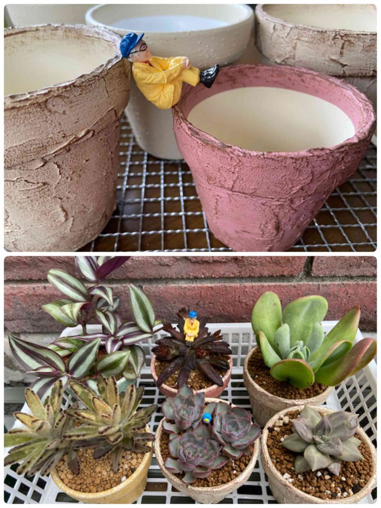 昨晩作ったリメ鉢✨と自作リメ鉢に今年植えた多肉さん達✨😊