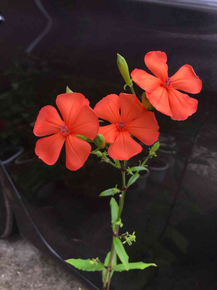 まず、花の色ですが、かなり正統派の朱色です。マツモトセンノウの赤とピンクの中間の感じです😊(前月にアップあり)。