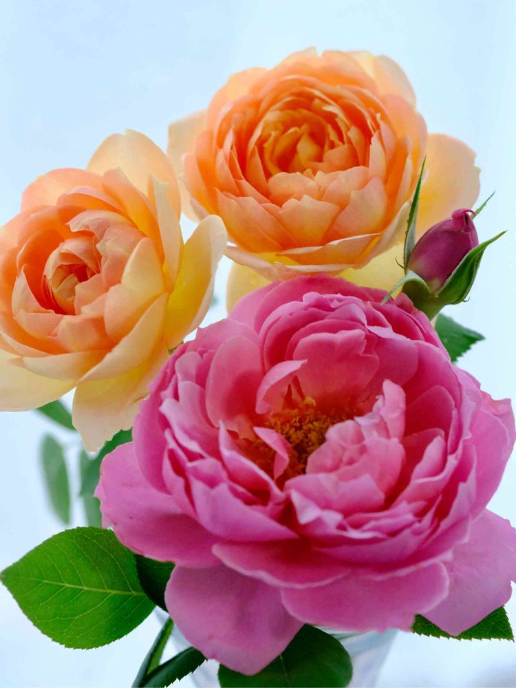 レディオブシャーロット(アプリコット色)とサンテグジュペリ(ピンク)