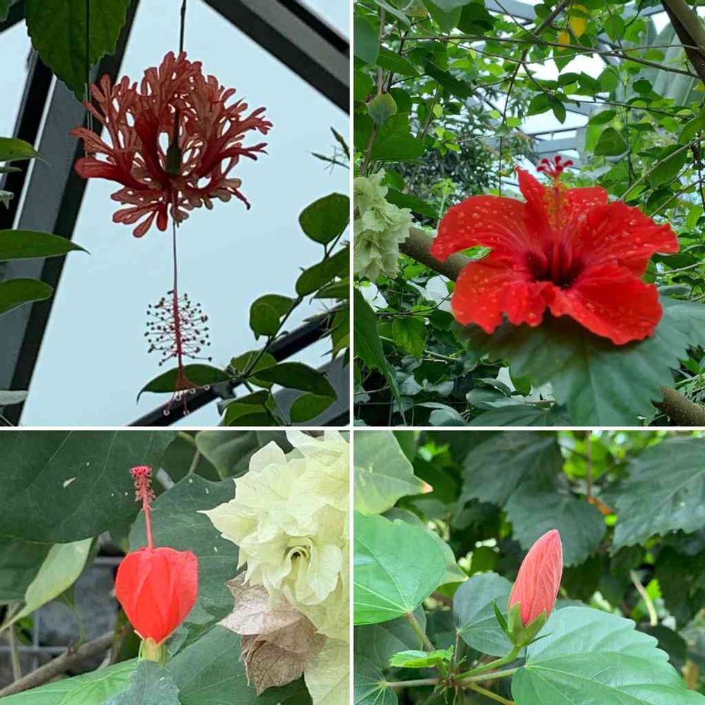 この温室の中で私が名前を知っていたのは、ハイビスカスぐらいでした。フウリンブッソウゲも、もちろん初めて見ました〜