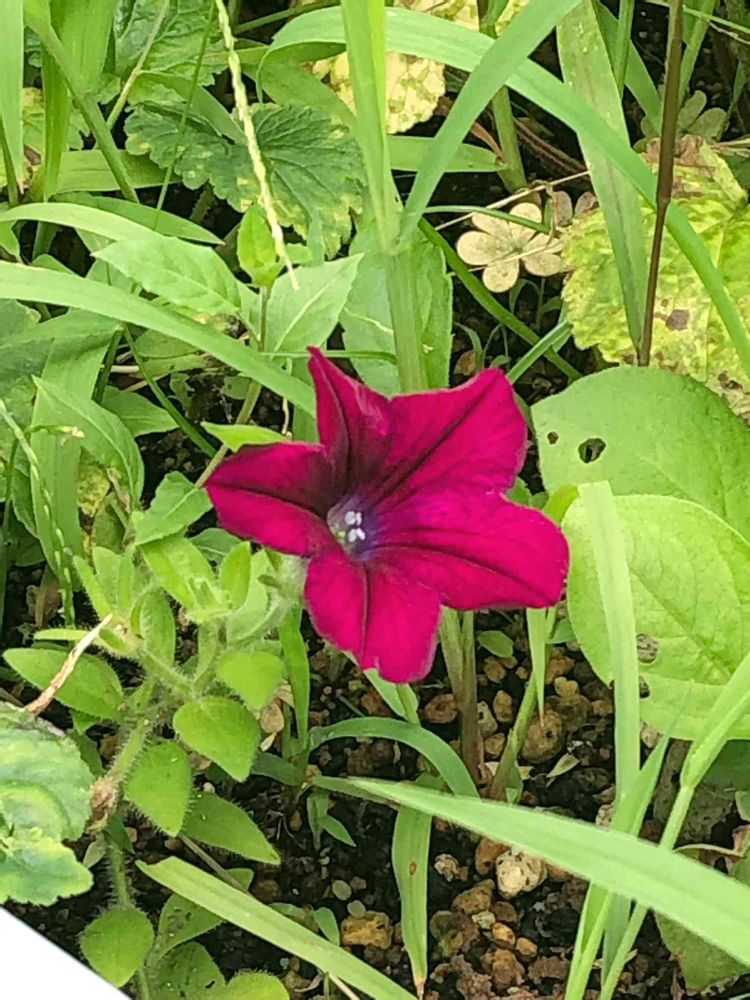 2021-7-11 (日) 4年前サフィニアをポット苗で🌱育てて消えてしまったけれど溢れダネで毎年現れます鉢上げしない方が又 観れるのかな?濃い色で咲くと目立って撮りたく📸なります。