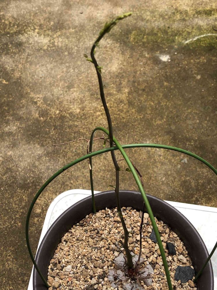 葉が枯れ落ちて、休眠のために水やりをひかえていましたが、新しい立派な茎がでてきました。