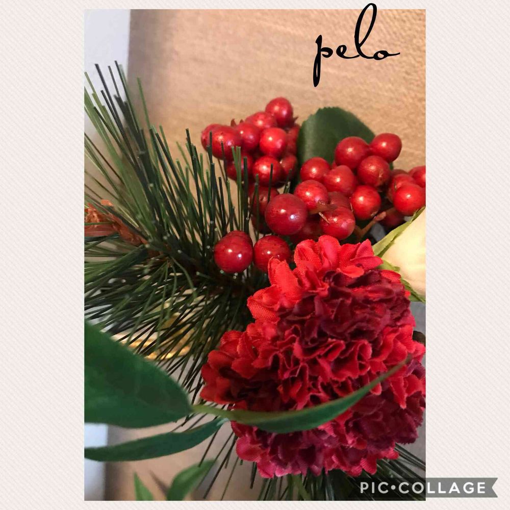 お正月飾りのアーティフィシャルフラワーが唯一赤かった😅