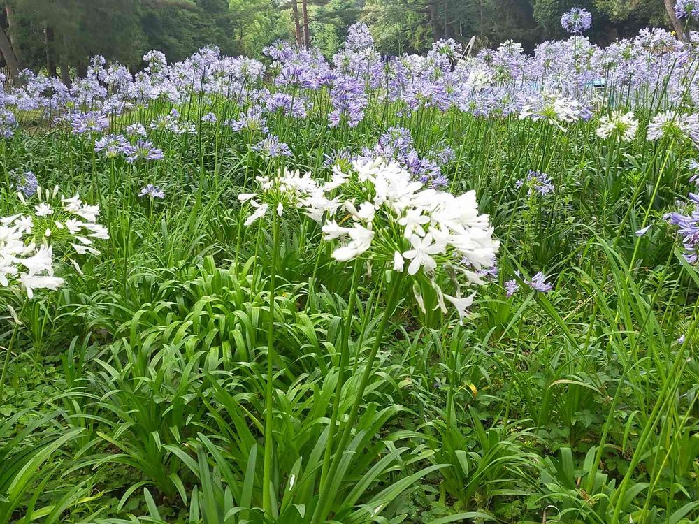 公園のアガパンサスが白も紫も咲き乱れていました😊