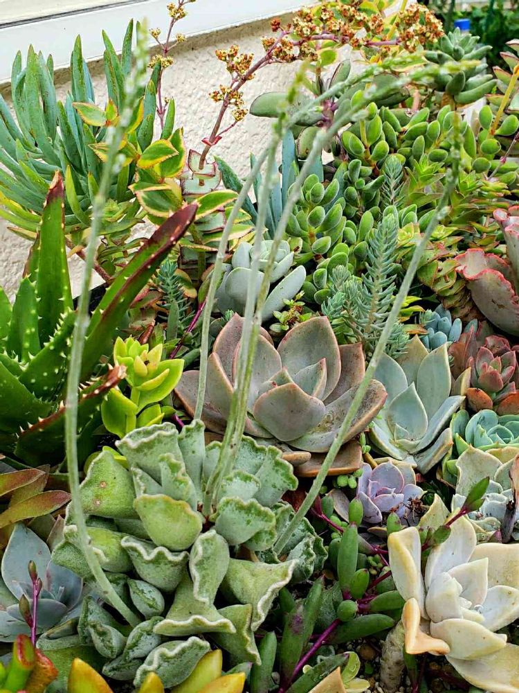 寄せ植えのアドロミスクス属クリステイタスの花茎が、棒になっています。😆
