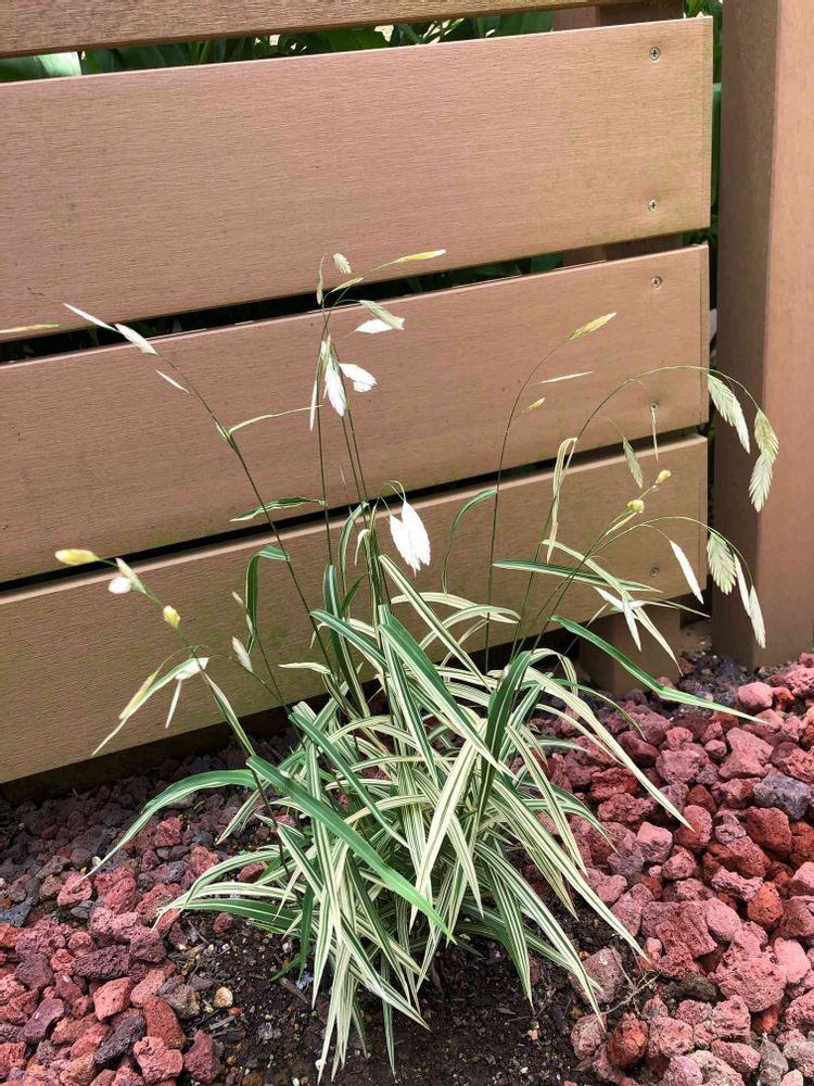そんな時に見つけたのがこの斑入りのワイルドオーツで、草丈も1m未満だし、ススキやチカラシバやパンパスグラスみたいに強烈な株張りでもないしで、本当に気に入ってます(*^^*)💕