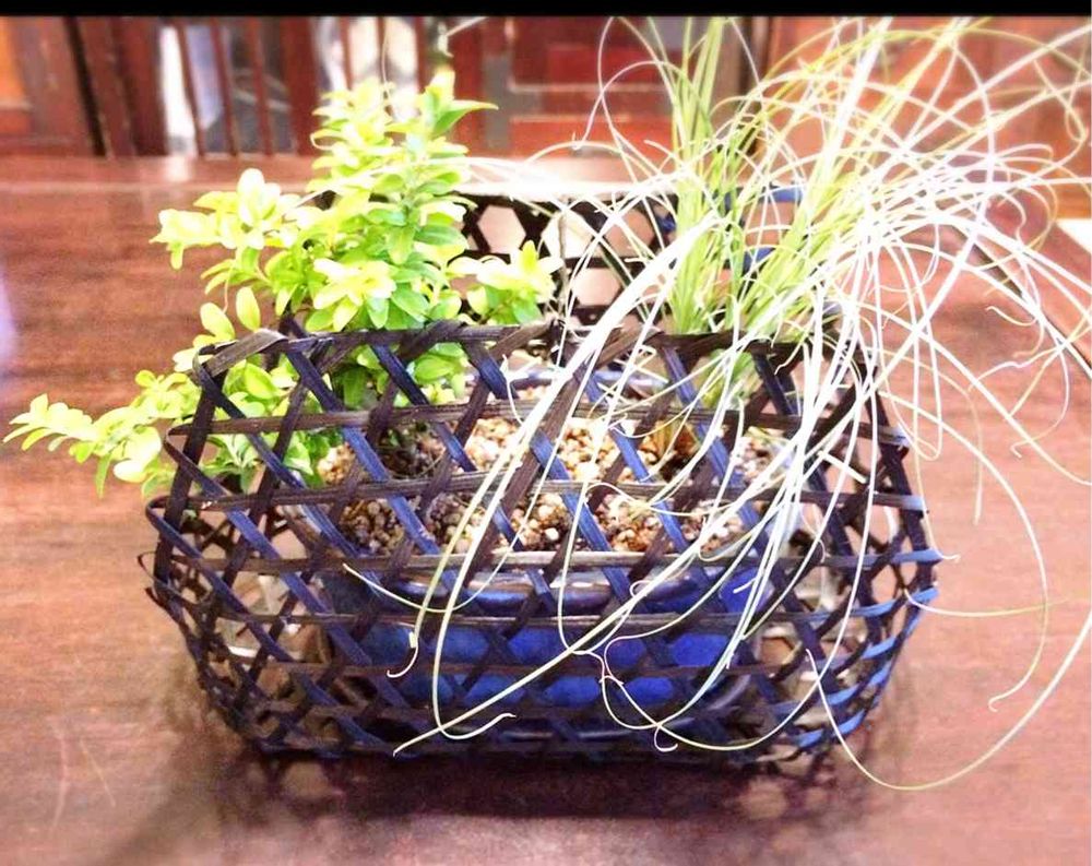 お友達のお土産ゼリーのパッケージを再利用。ホームセンターで買った正味200円のグリーンがかわいくなった!