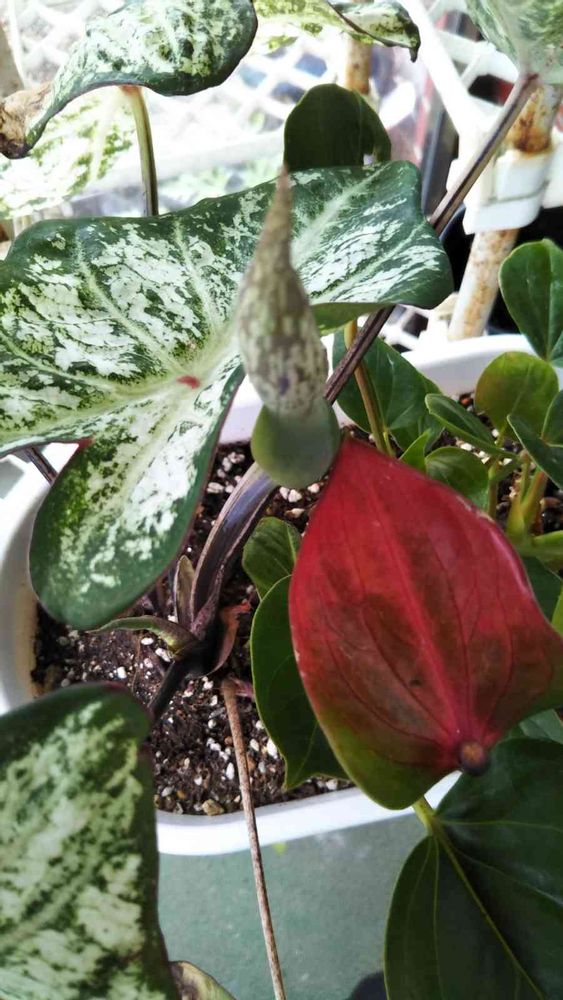 観葉植物のカラジウム🍭ダ厶さんに、何か変な形の物が、つきました。💦