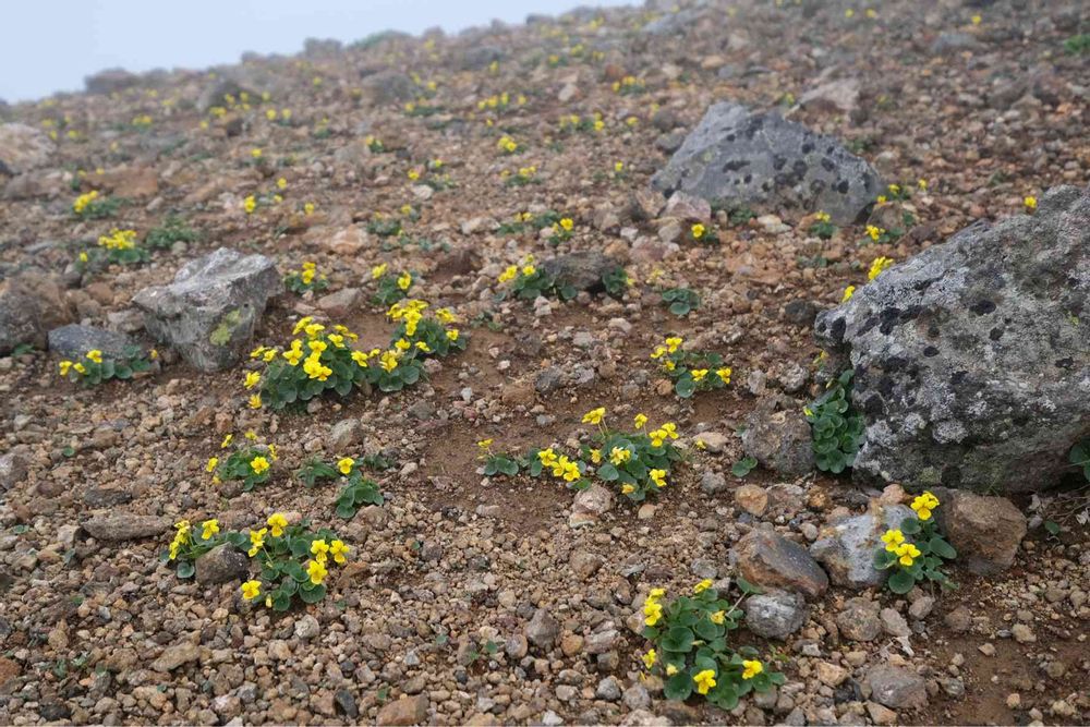 斜面一面に咲いているエゾタカネスミレです。これはその一部分です。
