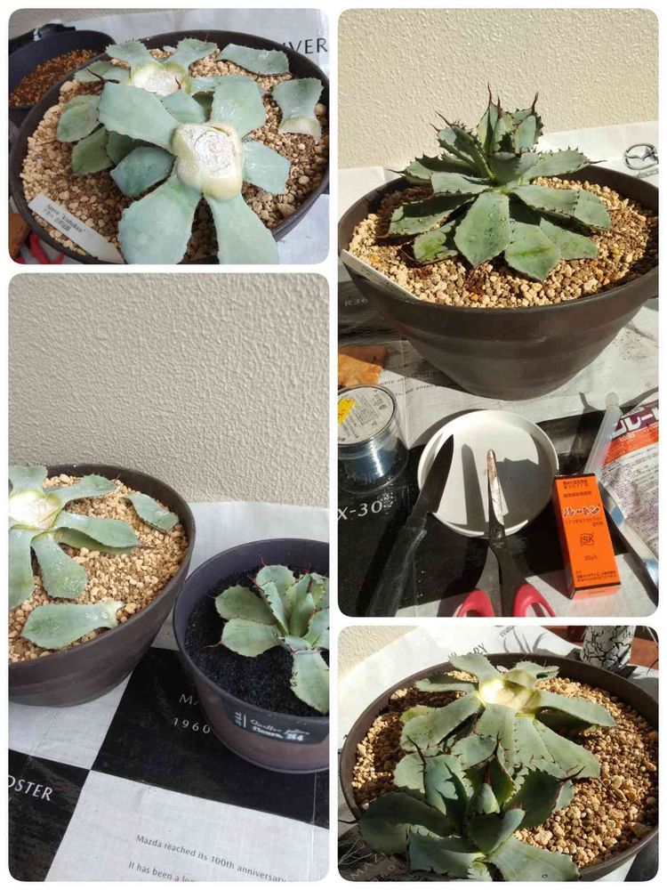 カット後は、ルートンとべンレートを使ってしっかり塗って乾燥させた後、上部は用意した鉢にIN😊元気に格好良く育ちますように🙏