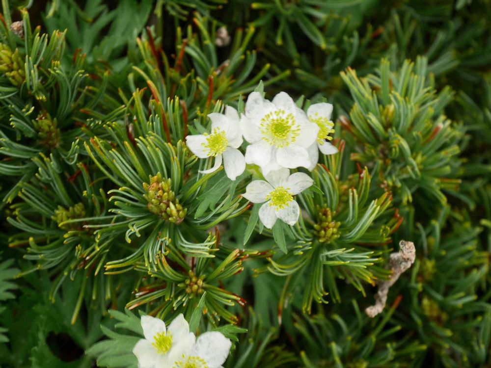 花はハクサンイチゲだと思いますが、回りのハイマツみたいなのは分かりませ✋