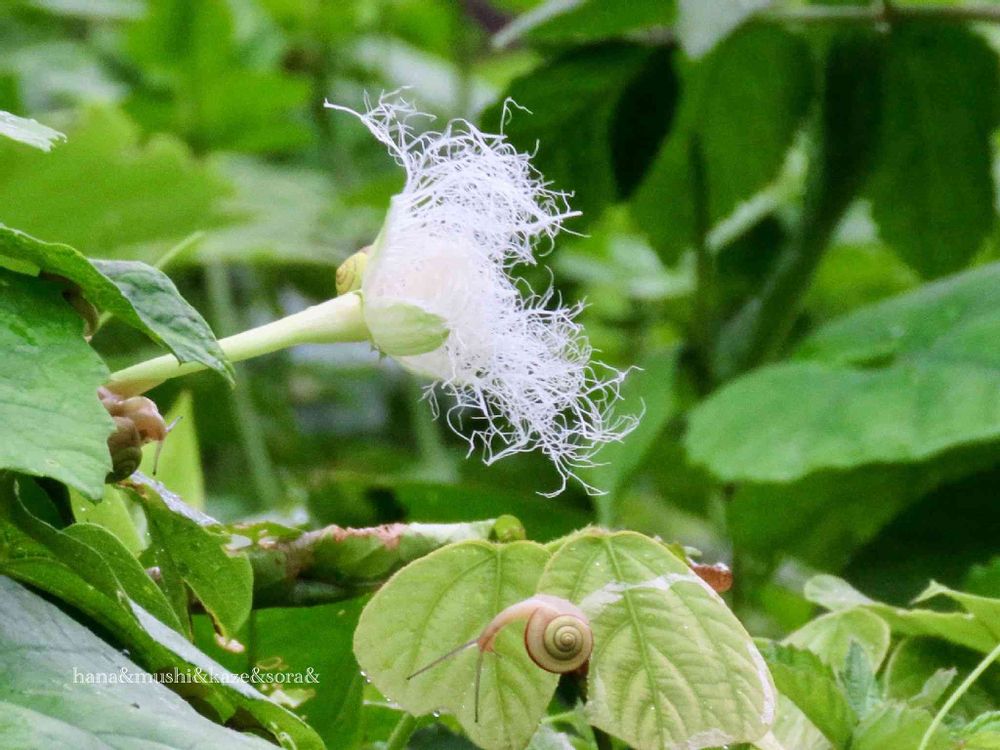 カラスウリの花とカタツムリの赤ちゃん🐌